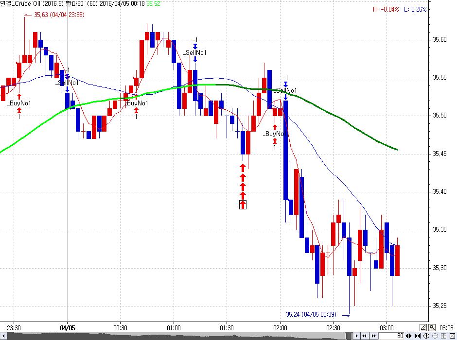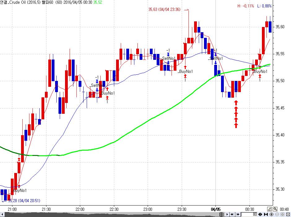 2.매수청산을 60 이평선 기울기가 하락으로 바뀐시점에서 5개째봉까지 기울기가 상승으로 바뀌지 않으면 청산(종가기준,이평선 위,아래위치는 상관없고 기울기만으로 판단).
