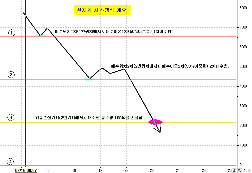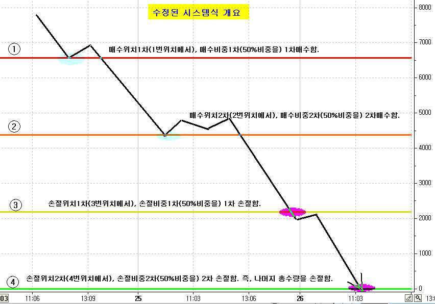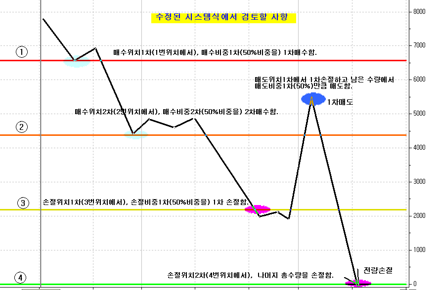 - 그리고 한번에 손절(최종손절위치에서)하는 시스템식입니다.