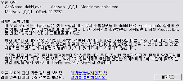 오류에 관한 정보가 저희 예스스탁으로 오는것이 아니라 MicroSoft 로 보내어 지게 됩니다.