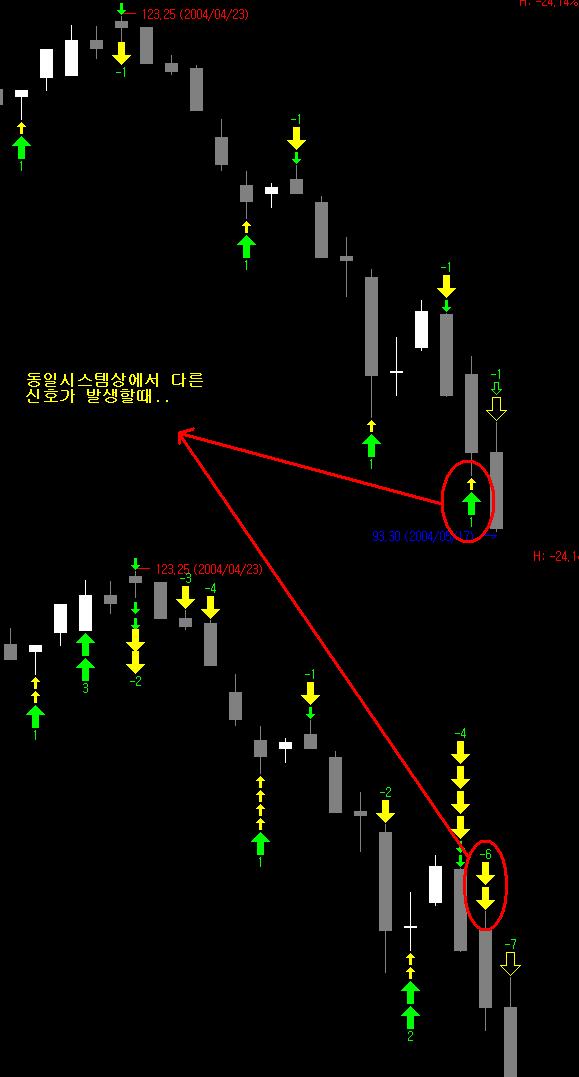 지난주 금요일을 보면 추가 매도신호가 두개 발생하였는데