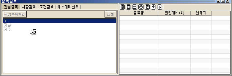 > 관심종목을 클릭하면 커서가 모래시계로 변하고 조회가 안 됩니다.