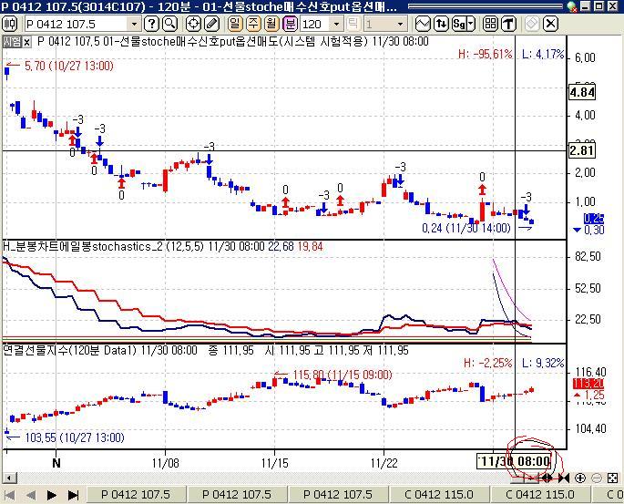 전 옵션 120분봉을 사용하여 매도를 하는데