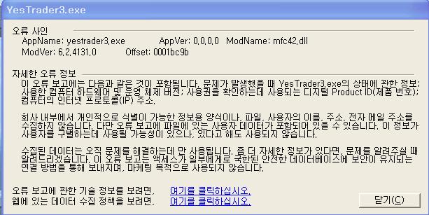 > 종목검색에서 검색하다가 예스 매매신호로 가서 다시 검색 하려면 애러가 나면서 프로그램 다운 입니다.