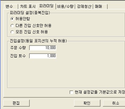 그런데 피라미딩에서 허용안함으로 할때 주문수량 진입횟수 숫자값이