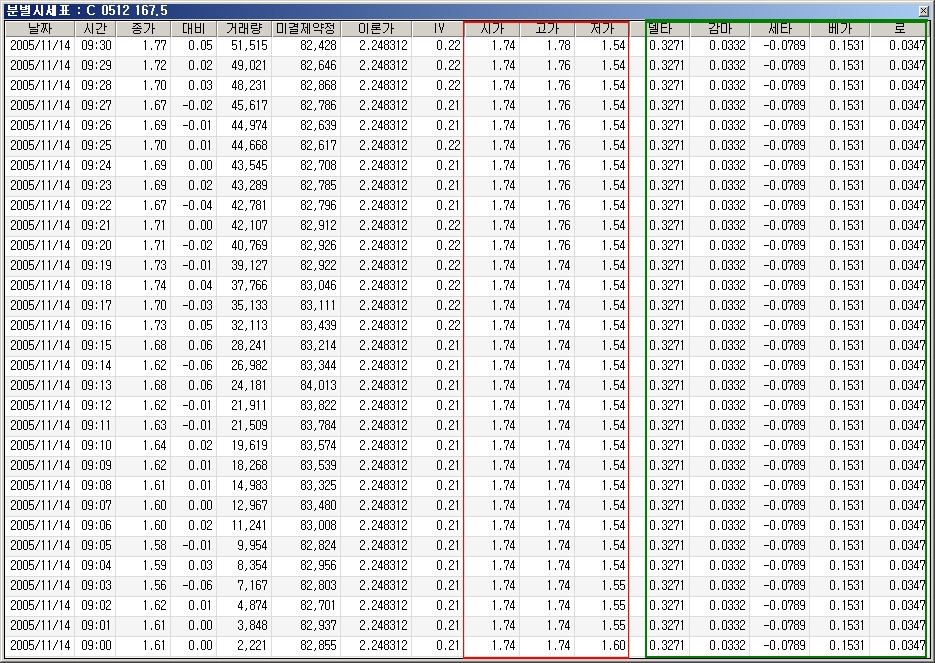 > 옵션시뮬레이터의 분별시세표를 보니 데이타가 좀 이상합니다.