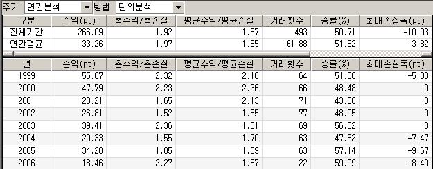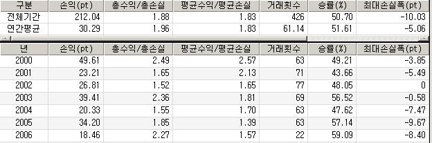 시스템명과 정확한 설정내용(종목, 기간, 봉갯수 등)을 알려주시거나,