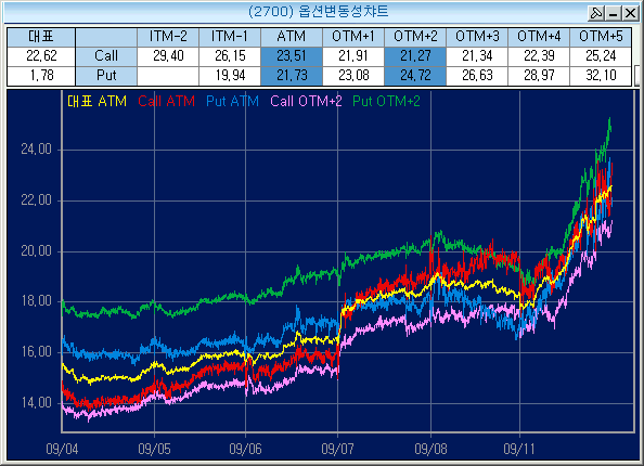 현재 옵션 내재변동성 흐름을 볼 수 있는 화면은