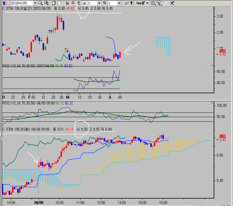 5분 차트 이외에 분차트에서는 모두 틀리고 있습니다.
