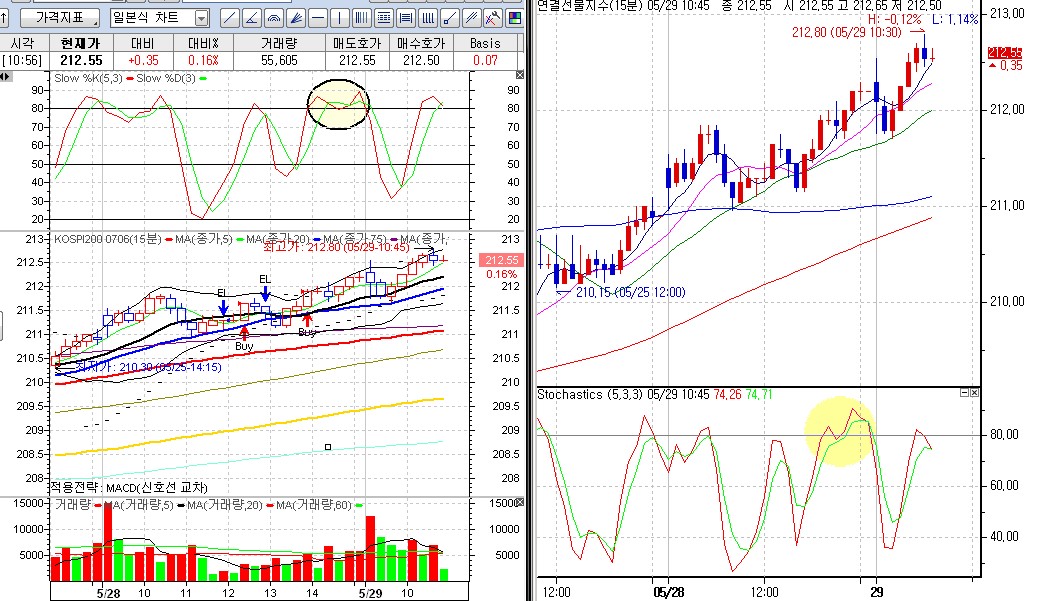 다름이 아니고 제가 대신 hts도 사용하고 있는데 스톡캐스팅 slow 수치값을 5,3,3으로