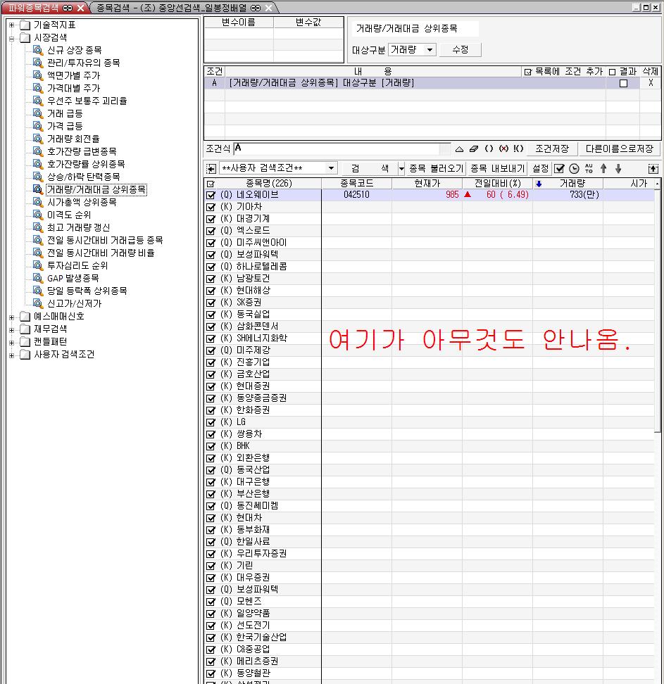 > 제목 : 파워종목검색 결과 표시 오류?