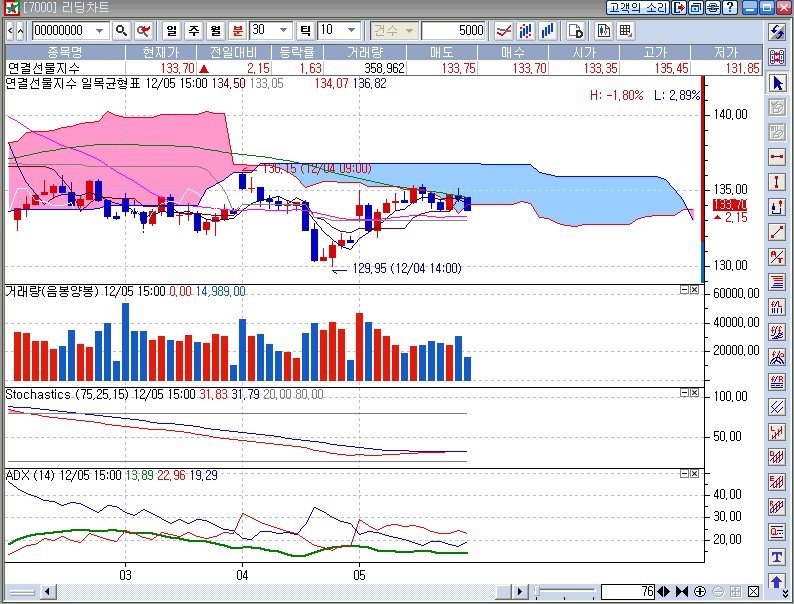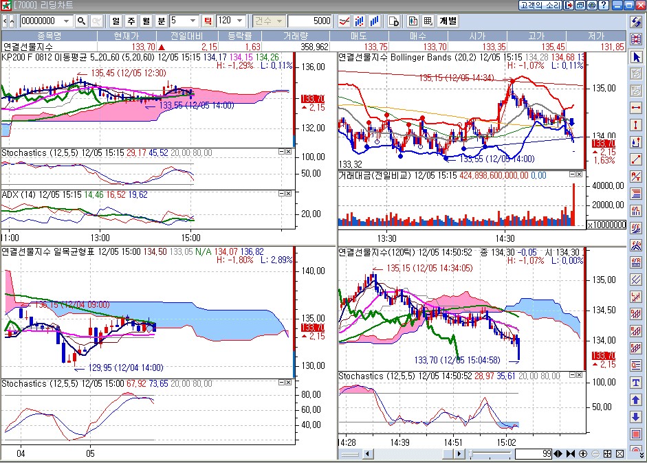 > 그림을 보시면 같은 연결선물의 120틱 차트 인데