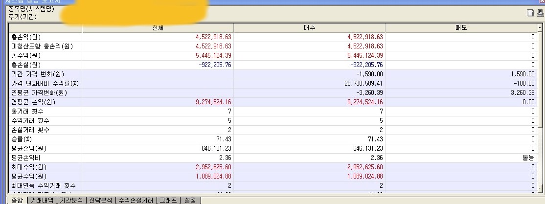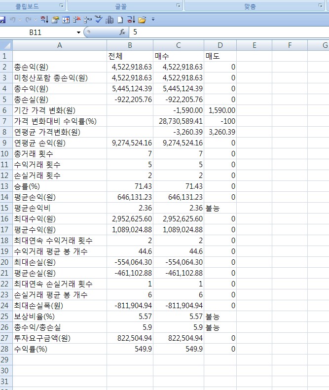 예스트레이더 3.1에서,시스템성능보고서에서 엑셀로 문서를 받을떄,