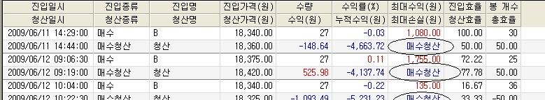 시스템 성능보고서에 최대손실(원)이 이상하게 나오네요. 캡쳐한 이미지 유첨 드립니다.