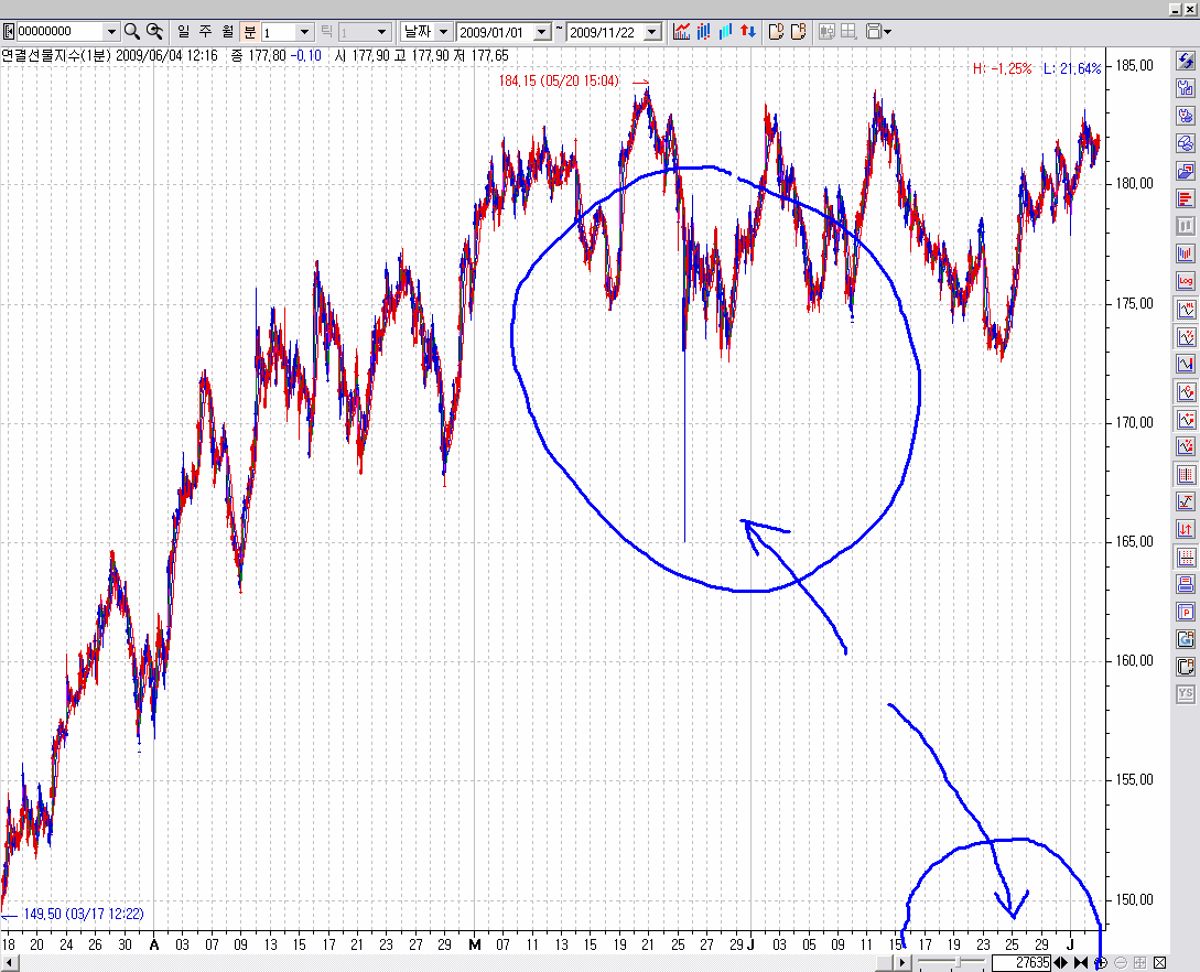 그러고보니... 이게 1분봉이라 그런지도 모르겠네요.