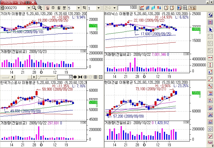지금 주식에 많은 종목을 시스템식을 적용을 하기 위해서는 차트를 분할로 셋팅을 해주어야 합니다 . 물론 창 하나에 분할화면에 나타난 종목을 전체로 맞출 경우는 자동셋팅이 됩니다 .