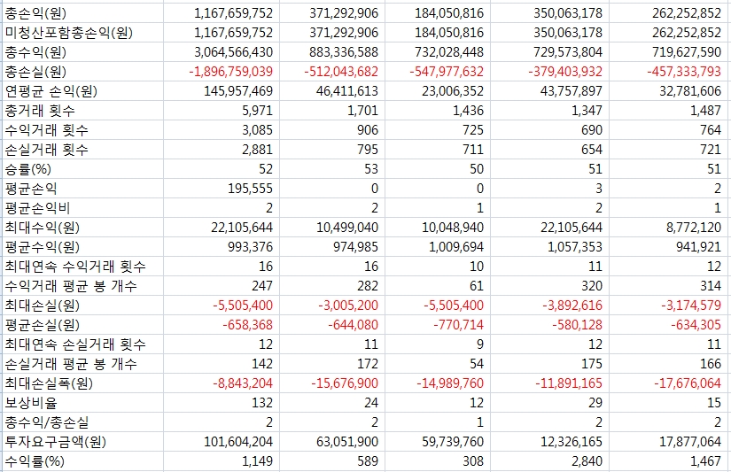 1.분할 청산하는경우에는 최대손실폭 계산이 오류가 발생하여 과소 계산 됩니다.