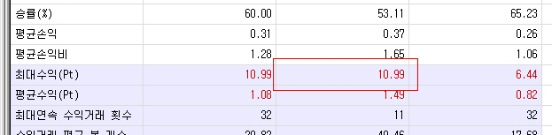 그림파일을 두 개 첨부했는데 종합분석에서 최대 수익은 10.99