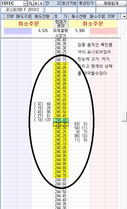 호가에도 조그맣게, 고가와 저가를 H,L 이렇게 표시되어있으면,