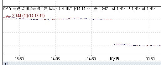 투자주체별 데이터의 시간과 종합지수 데이터 시간이 약 1~2분 정도 차이가 발생하여