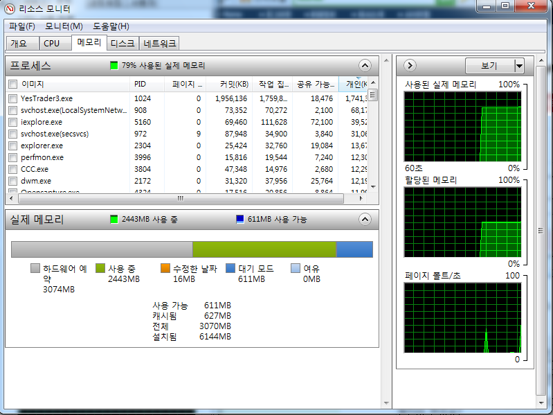 어떨땐 원도우7에 6기가를 달고 사용중인데도