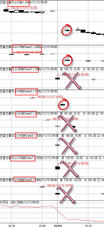 운영자님의 답변을 보면.. 리딩은 개장시간이 달라질때 다른 방법으로 표기했다고 했지만, 증권거래소에서도 2008년11월13일날.... 90분봉, 120분봉의 값이 리딩투자증권의 값과 같은가요?
