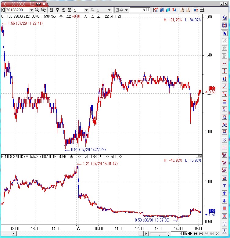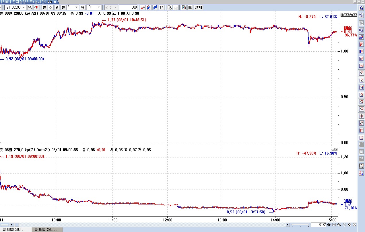 예스트레이더처럼 전일분 챠트가 나오게 할수 있는 방법좀 알려 주십시요. 감사합니다