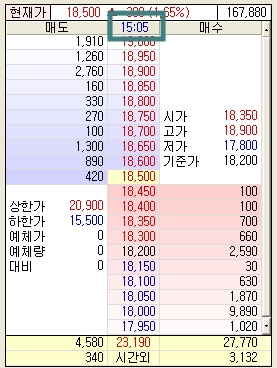 현재가창 분 표시