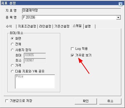 선물차트위에 겹쳐놓고 사용할때 지표를 거꾸로 놓고 볼수있는 설정이