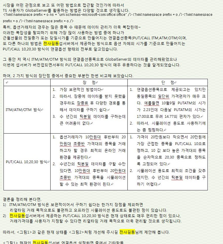 당일 선물시가 기준으로 편성하고, 실매매자를 위한 옵션의 선정기준을 만들어 주시면 좋겠습니다.