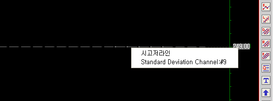 바탕화면 검게 하구요 시고저라인지표 설정합니다. 그리고 차트에 툴바의 각종 채널을 그어 봅니다. 물론 채널의 색은 하얀색으로 해야 보이겠죠?