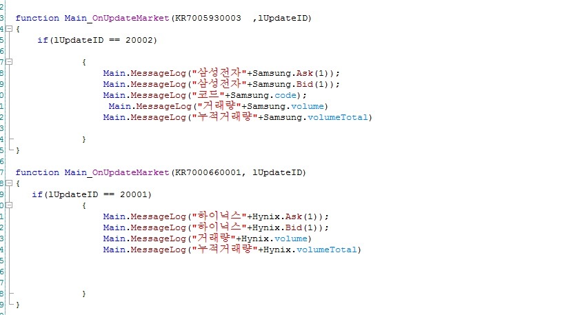 Main_OnUpdat*Market을 사용하면(이벤트를 여러번 사용) 각각의 종목의 정보를 실시