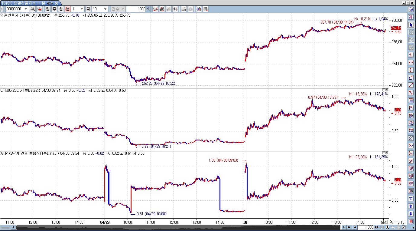 장중 참조데이터중 "ATM+2단계 연결 콜옵션"의 장중 데이터가 이상하게 나옵니다.