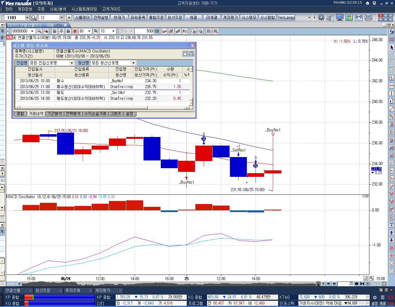 234.30 매수진입 --- 235.75 청산 1.45 이익 (실제는 234.55청산 0.25이익)