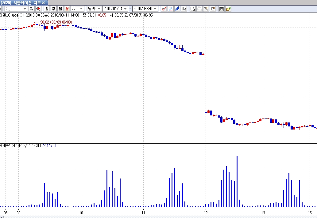 > 제목 : 우리선물 Yes global의 CL 종목 차트 오류