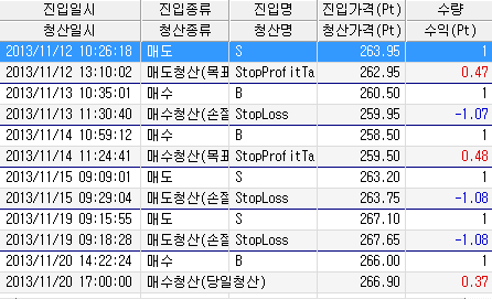 반대로 19일은 267.1매도, 267.66 손절인데 -1.08로 나오고요..