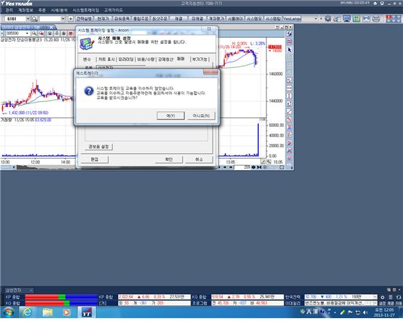 > 전략실행에서 자동주문을 체크하면 그림1과 같은 메세지가 떠서