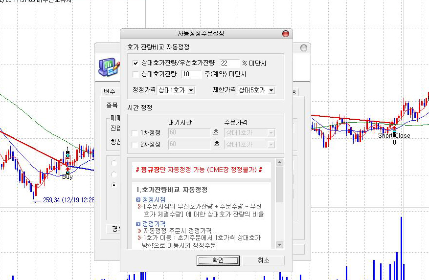 슬리피지를 줄이고자 예스자동정정 기능을 활용하고 있습니다.