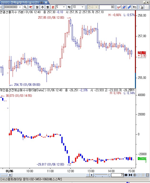 여기에 체크하신 후 참조차트를 적용하시면 기본차트와 참조차트 모두 금일분만 나옵니다.