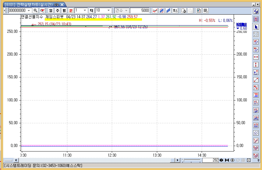 > 연결선물지수 차트에 피봇지표를 생성하여 적용을 시키니 첨부이미지와 같이 표시되어 캔들을 볼수가 없습니다.
