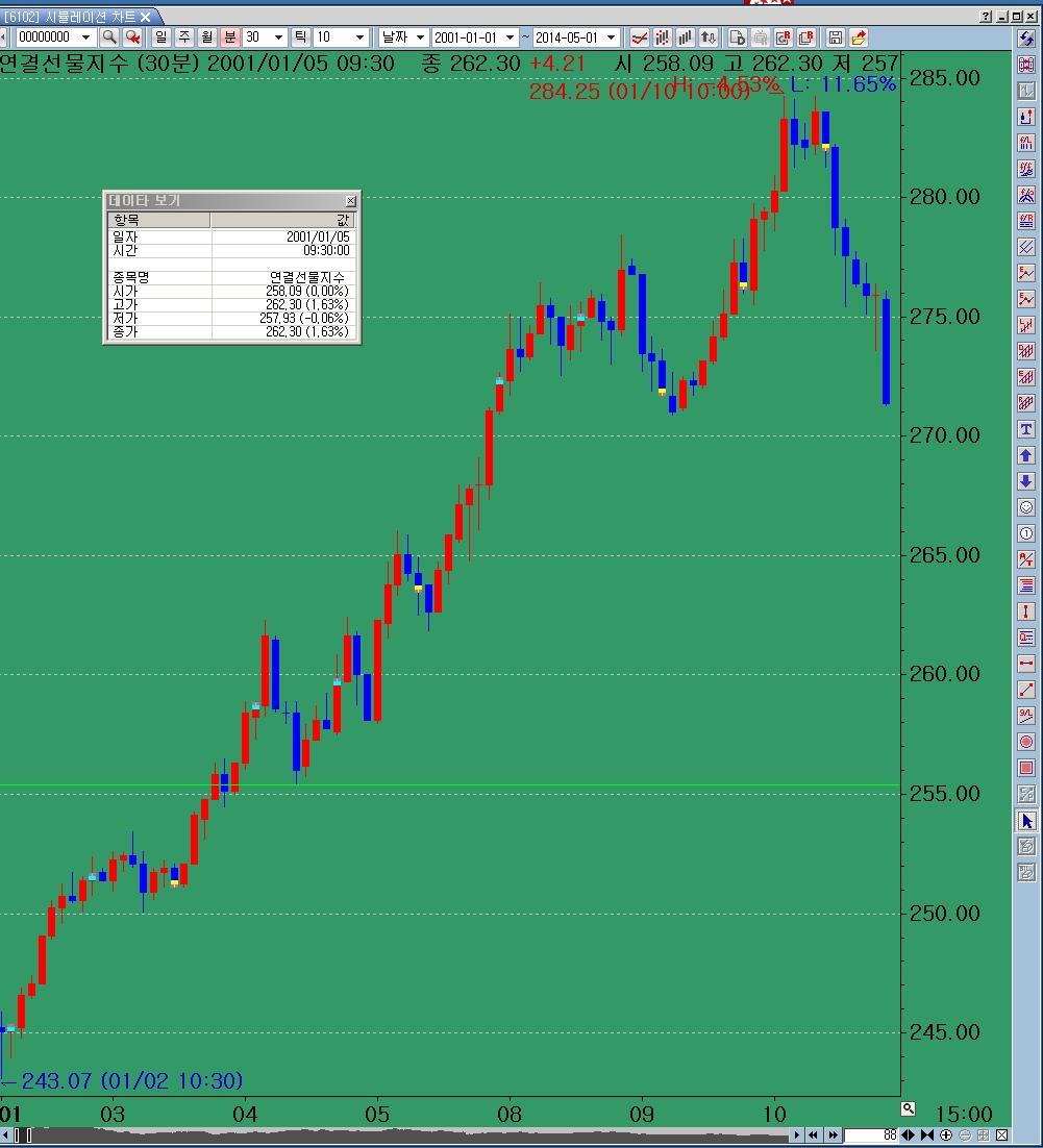 > 제목 : 시뮬레이션 차트에서 수정주가 갭보정 으로 차트를 볼때...