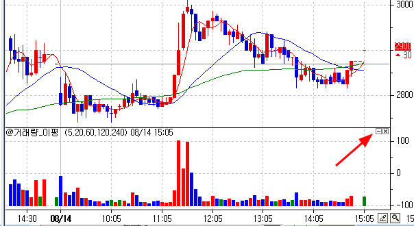 이미지의 최소화버튼(화살표 부분)을 누르면 지표가 사라지던데, 사라진 지표 다시띄우기는 어떻게 하나요?