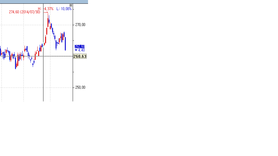 두번째 그림에서처럼 y축 260인 가격에 클릭해보면 챠트의 가격은 260.63입니다.