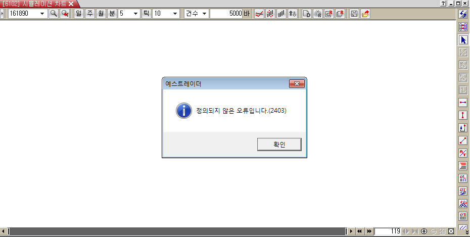 > 실시간챠트에는 틱챠트가 되는데, 시뮬레이션에서는 틱챠트가 안되는 것인지 아니면 제 프로그램만 오류가 생기는건지 에러메시지 팝업이 뜹니다.