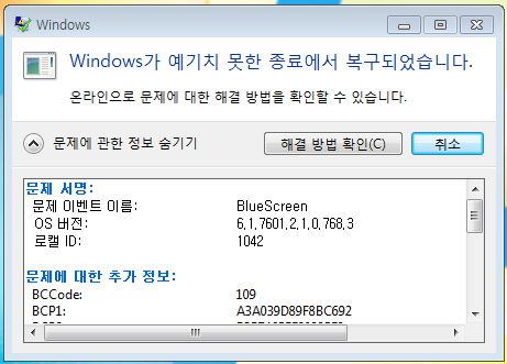 > 제목 : 윈도우7 (64) 블루스크린이 뜨는데요