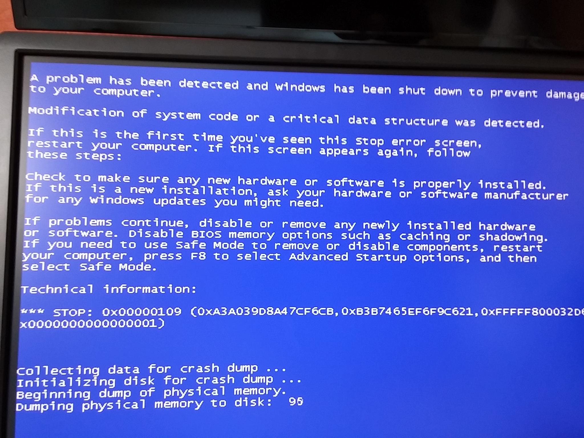 블루스크린 00000109 에러가 뜨는데 방법이 없을까요?