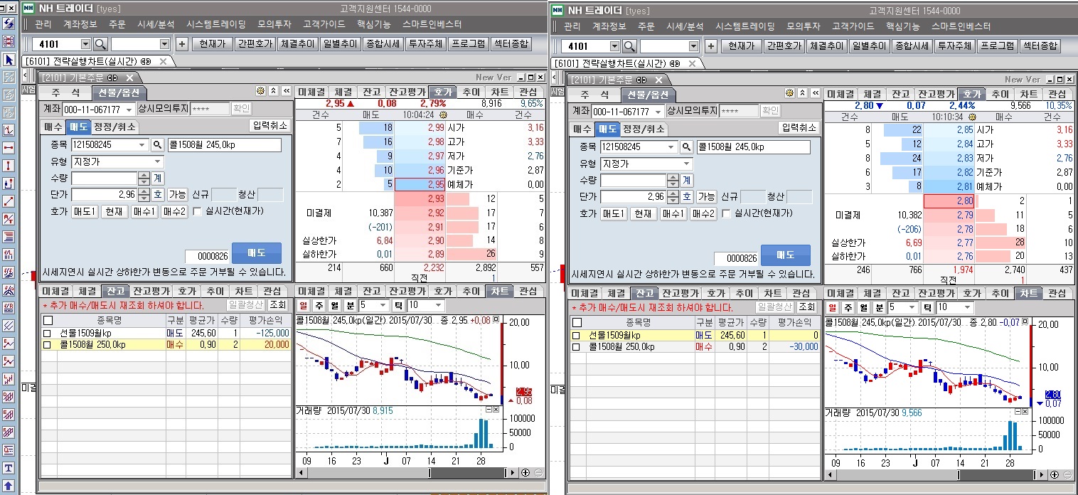 > NH트레이더에서 옵션종목의 실시간 평가손익을 도저히 사용할 수가 없는 지경입니다.