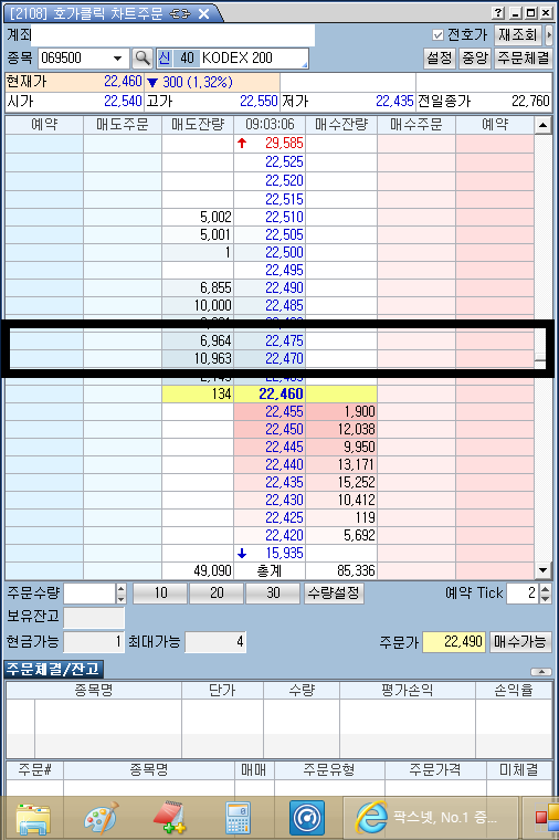 > 호가클릭주문 => 전호가 => 중앙 버튼 클릭후에도