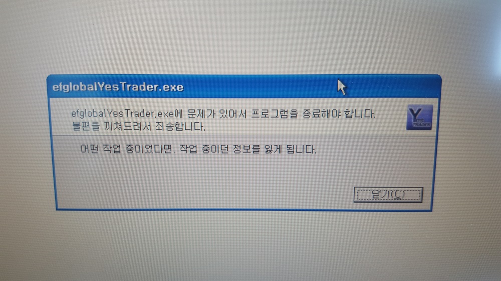 시스템이 첨부와 같이 메세지를 뛰우고 죽습니다.