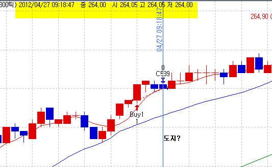 그림에서 보듯이 음봉인데 화면상단에 도지로 표현되네요