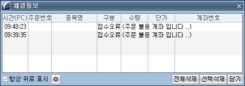 > 제목 : 접수오류(주문 불응 계좌입니다) 라고 떠요